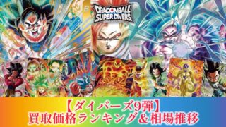 今回はドラゴンボールスーパーダイバーズ【第9弾】のPR・PUR・CP・GDR・SEC(パラレル版含む)を含めた上位33種の稼働初日の買取価格をランキング形式で発表していき、更に稼働初日以降の買取価格の推移を掲載していきたいと思います!