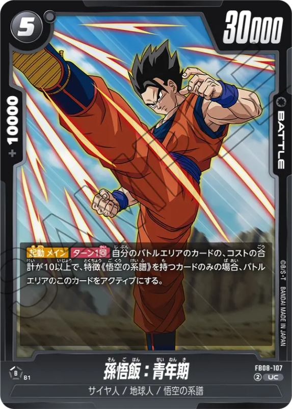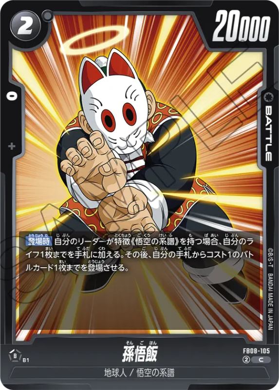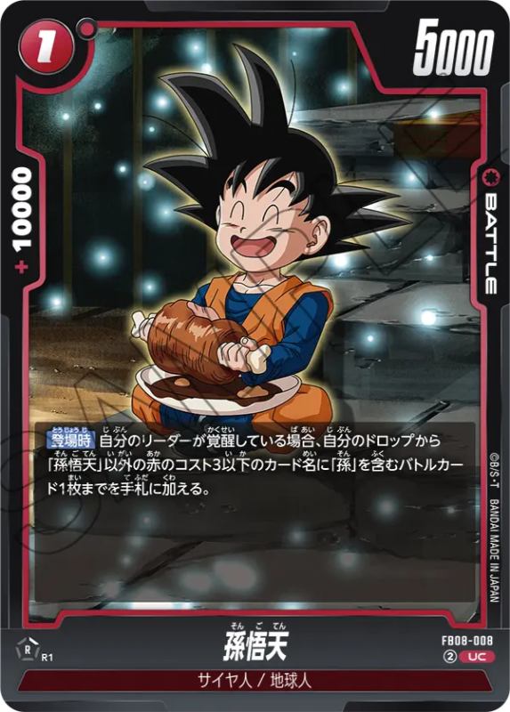 序盤からカードを揃える為の要求値が高そうに感じますが、最強2枚サーチの『FB08-007 SR(★) 孫悟空』が存在しているので、必要なカードをしっかり集めていけるのが優秀ですね♪