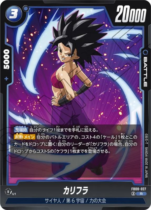 ただ、カリフラ側は1度に2面以上処理する動きを出来なくても、FB08-029 SR(★) キャベ』で最強の動きをしながらコスト5以下1体なら簡単に処理してくるので、ターレス側のカードも全てカリフラの除去範囲にある事に注意しておきましょう。