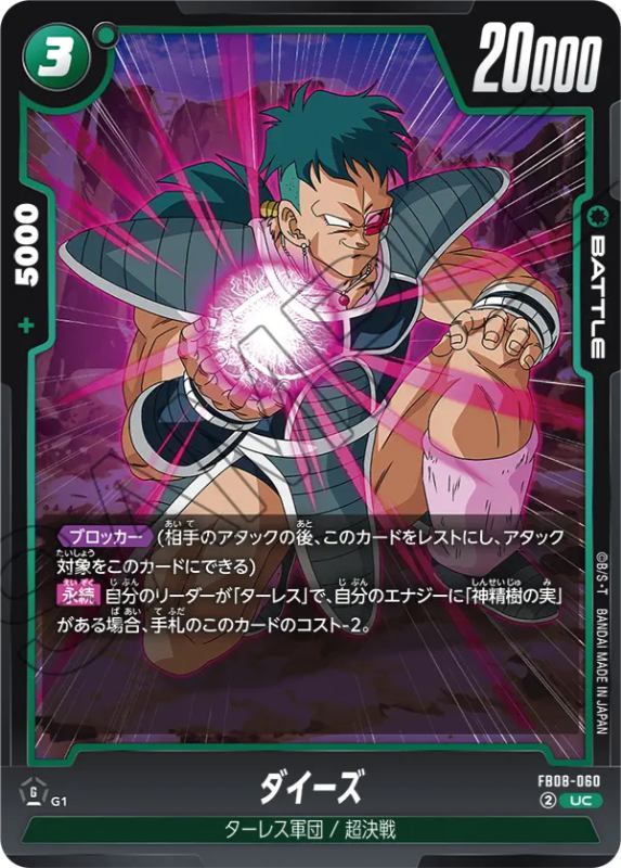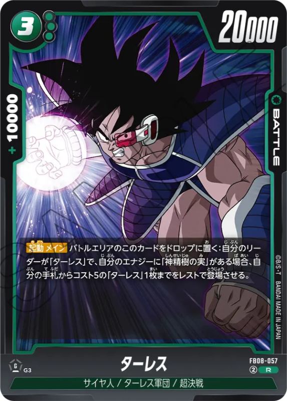 ピックアップして簡単にお伝えすると、FB08-057 R ターレス』&『FB08-059 SR(★) ターレスの組み合わせで3エナジーで最大14コスト分の面展開が可能という超絶性能カードが存在しています。