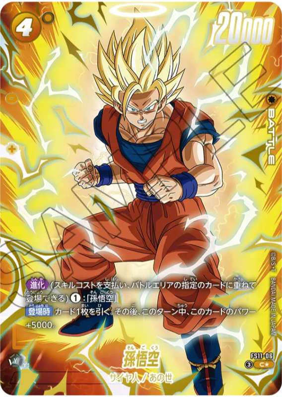 また、本デッキには万券&1コスト進化が超偉いので雑誌付録の『FP-077 PR 孫悟空』を採用していますが、スタートデッキEX付属のコンボレスではあるものの登場時1ドロー&1コスト進化の『FS11-06 C(★) 孫悟空』を採用するのも十分強い為(※1ドローの方が強いまである)、PR4悟空がない場合はC4悟空を採用して頂いてもよいと思います♪