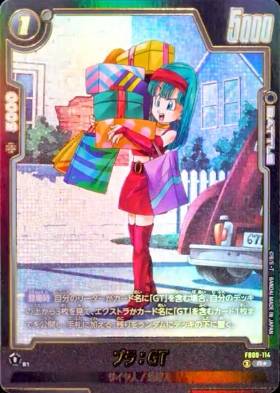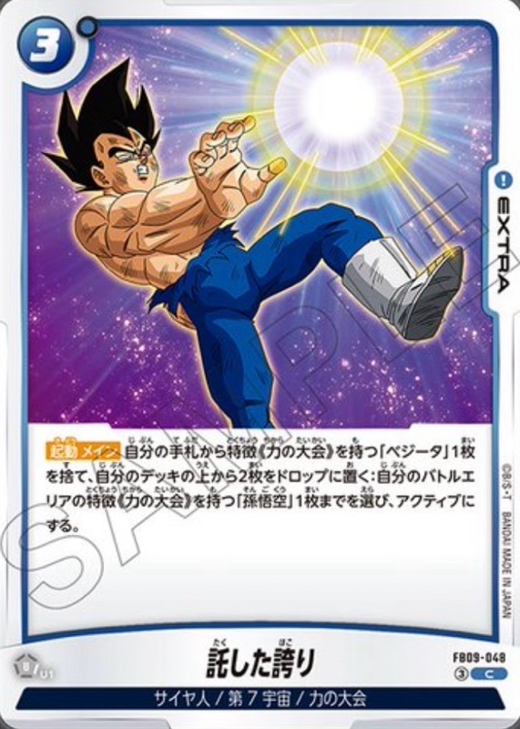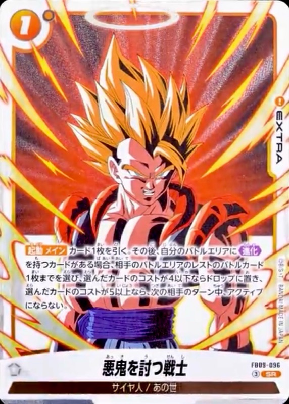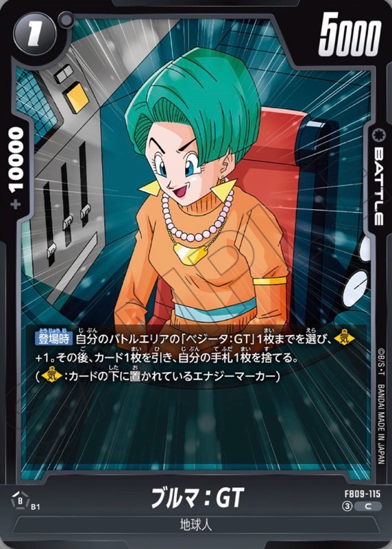 ◾︎ 登場時に手札入れ替えをしつつ『FB09-116 R ベジータ:GT』の【気】を+1して効果の発動条件を達成させる目的で使用したり、『FB09-117 SR ベジータ:GT』をより強化する為に使用できるのが優秀。