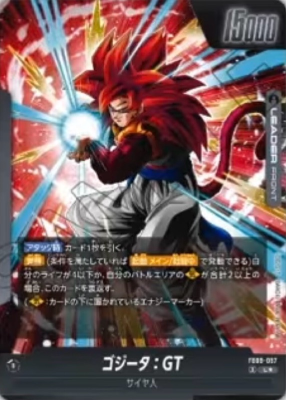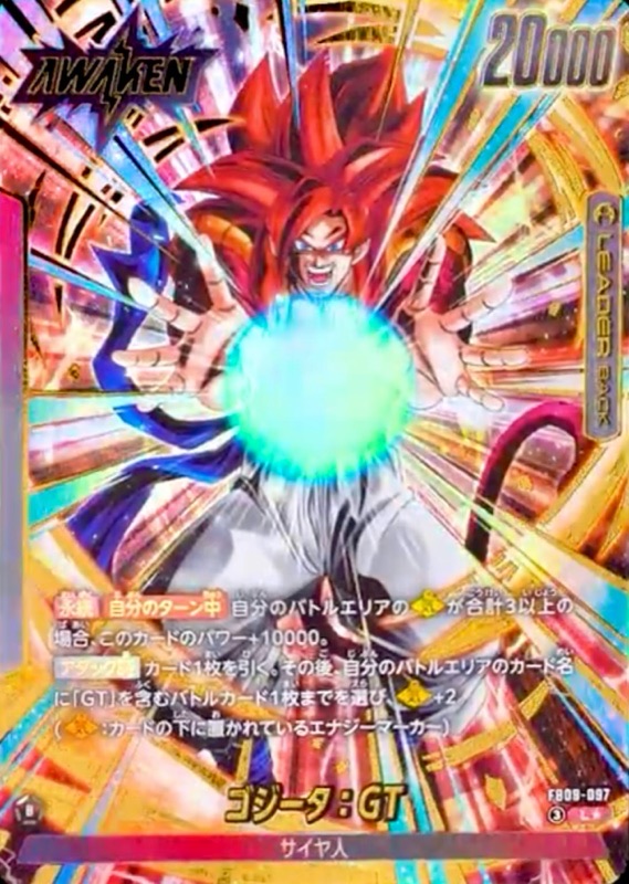 ◾︎【気】が3以上ないと効果を発動できないので、リーダー『FB09-097 L ゴジータ:GT』の覚醒後スキルだけでは気の数量を満たせないのが非常に使い勝手が悪い。
