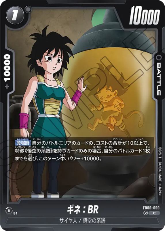 上記の孫悟飯からリソースを確保する『FB08-110 C チチ』やパワーパンプの『FB08-099 C ギネ:BR』を出せ、悟空少年期を起点に展開すればリーダー悟空Jrが覚醒していれば一気に9コストを場に追加できるのが嬉しい所。