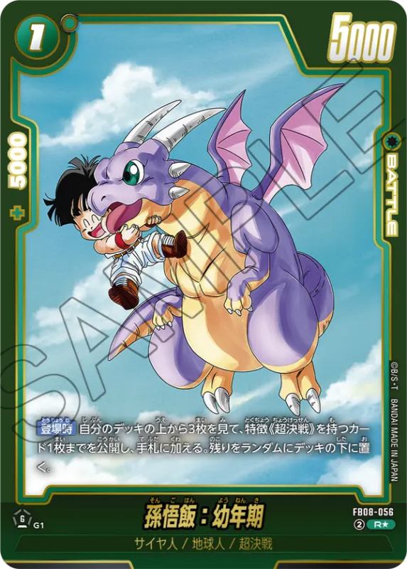 これだけ強く使える状況が揃っていながら、おまけ効果でスパコンまで拾える超絶優秀な『FB08-056 R(★) 孫悟飯:幼年期』等のコスト2以下悟飯幼年期を出せるのも偉い所♪