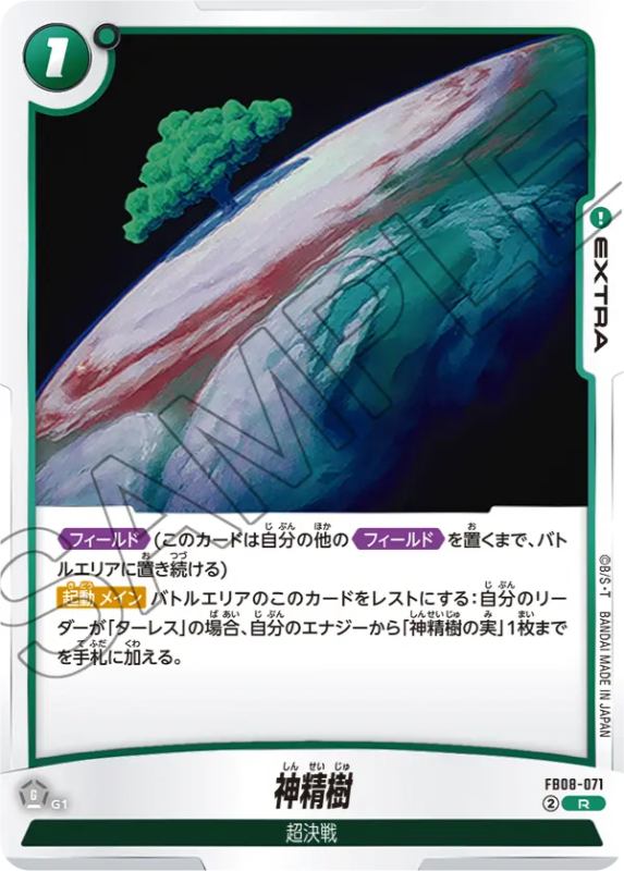 この実を自分&相手ターン中にガンガン使っていれば手札から消え去ってしまうことが心配になるかもしれませんが『FB08-071 R 神精樹』や『FB08-055 SR(★) 孫悟空』で回収可能なので無問題なのも良き所。