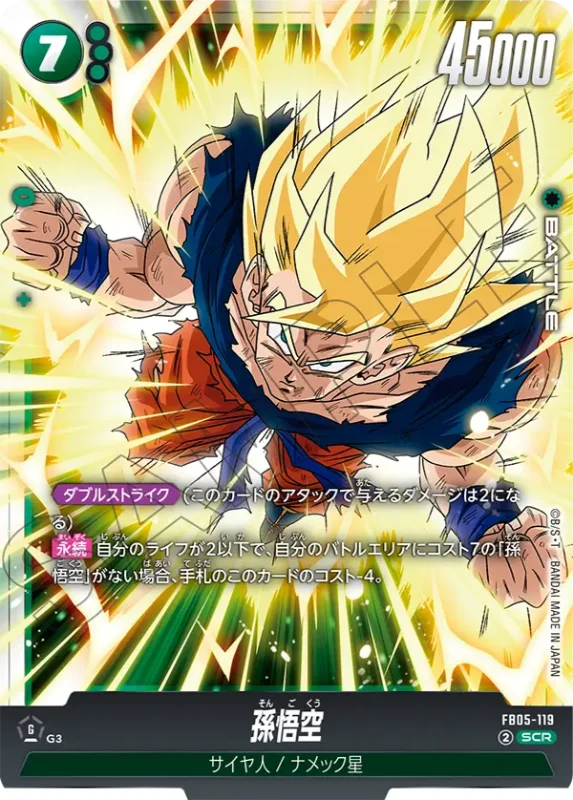 また、バトルカードについては2回攻撃系にクリティカルを付与するだけでなく、3コストで出した『FB05-119 SCR(★/★★) 孫悟空』に付与してクリティカルダブストとして相手のリソースを超強力に削れるのもかなり強そうですね!