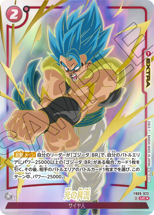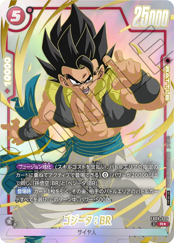 【起動 メイン】自分のリーダーが「ゴジータ:BR」で、自分のバトルエリアにパワー25000以上の「ゴジータ:BR」がある場合、カード1枚を引く。その後、相手のバトルエリアのバトルカード1枚までを選び、このターン中、パワー-25000。