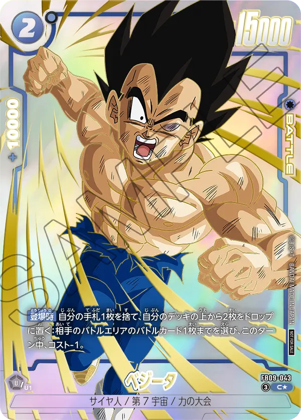 ◾︎ 超強力なデッキ下送り除去効果を持つ『FB09-045 SR ベジータ』の進化元になれ、SR5ベジータの除去範囲を広くできるのが非常に噛み合わせが良い。