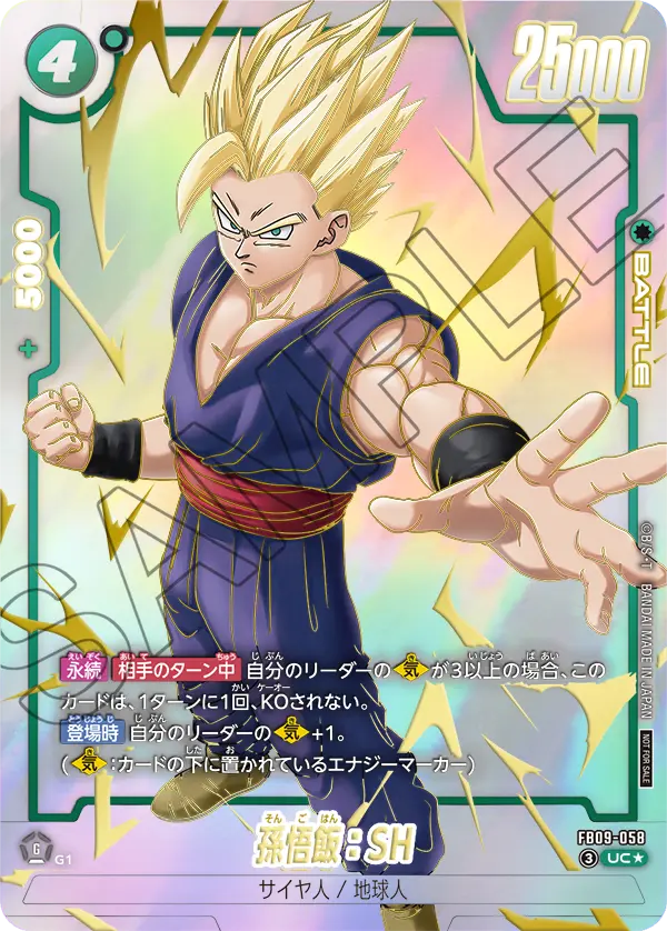 ◾︎『FB07-121 SCR(★/★★) 孫悟飯:SH』ならば最強のドロップ送り除去を持っており、尚且つ5エナを実質アクティブにでき、尚且つコンボパワー5000まで持っているので汎用性という点のみでみると圧倒的に劣るカードとなっている。