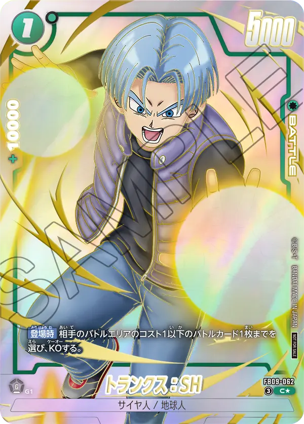 ◾︎ コスト5で出すには弱すぎるので、パワー20000以上の悟空&ベジータが2枚盤面にないと実質このカードを登場させられないのがいざという時に使い勝手が悪い。