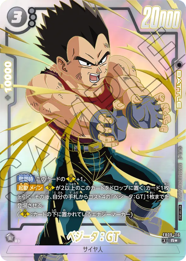 【起動 メイン】【気】が2以上のこのカードをドロップに置く:カード1枚を引く。その後、自分の手札からコスト4の「ベジータ:GT」1枚までを登場させる。