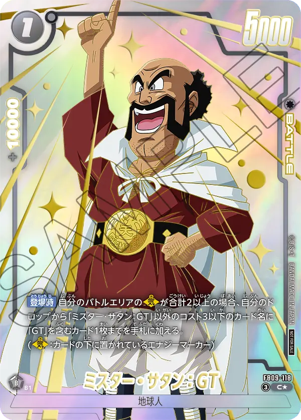 【登場時】自分のバトルエリアの【気】が合計2以上の場合、自分のドロップから「ミスター・サタン:GT」以外のコスト3以下のカード名「GT」を含むカード1枚までを手札に加える。