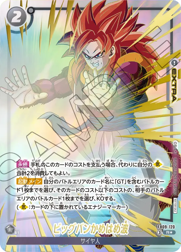 ◾︎ メイン時効果の条件を満たすと1ドローしてこのカードによる手札消費を補いつつ、手札から超絶強い『FB09-117 SR ベジータ:GT』のような対象カードのコストを踏み倒して登場させられるのが超強力。