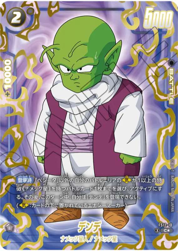 ベジータ名称以外の気が1以上あるナメック星持ちバトルカードをアクティブにでき、それによるデメリットがそのターンは続けてデンデを出せなくなるだけの超優秀な2回攻撃付与系カード。