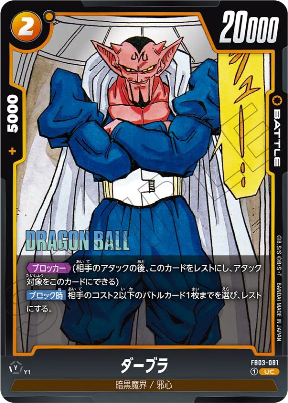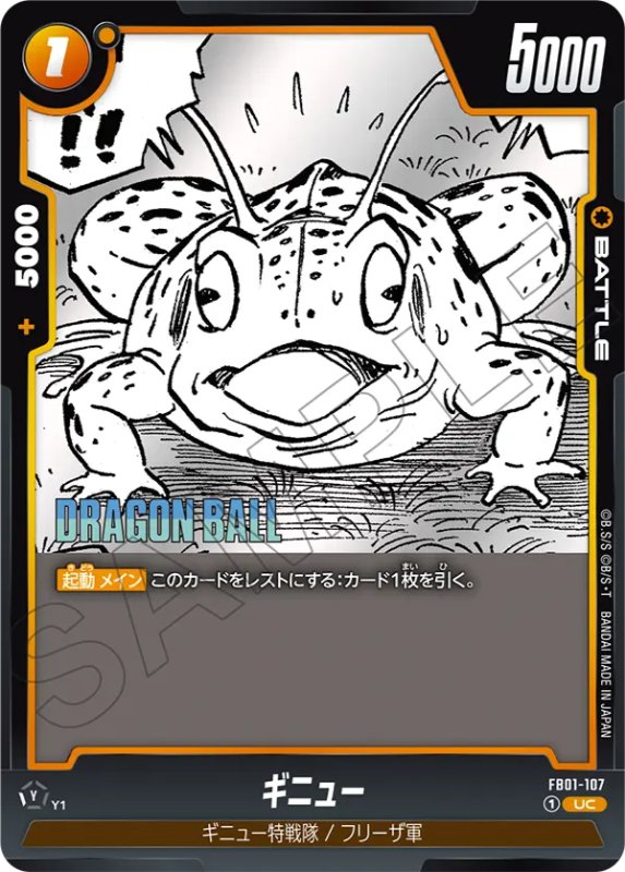 ◾︎ レスト状態でターンを終了すると、このカードをドロップに置く代わりに『FB01-107 UC ギニュー』をアクティブで登場させられ、生き残れば次のターンにドロソ役として活用出来るのが優秀。