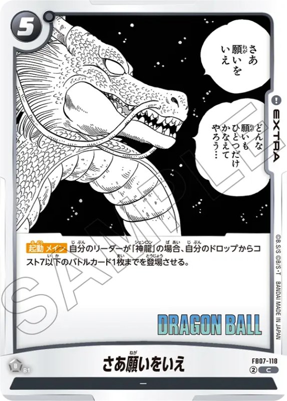 【起動 メイン】自分のリーダーが「神龍」の場合、自分のドロップからコスト7以下のバトルカード1枚までを登場させる。