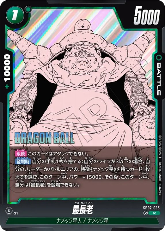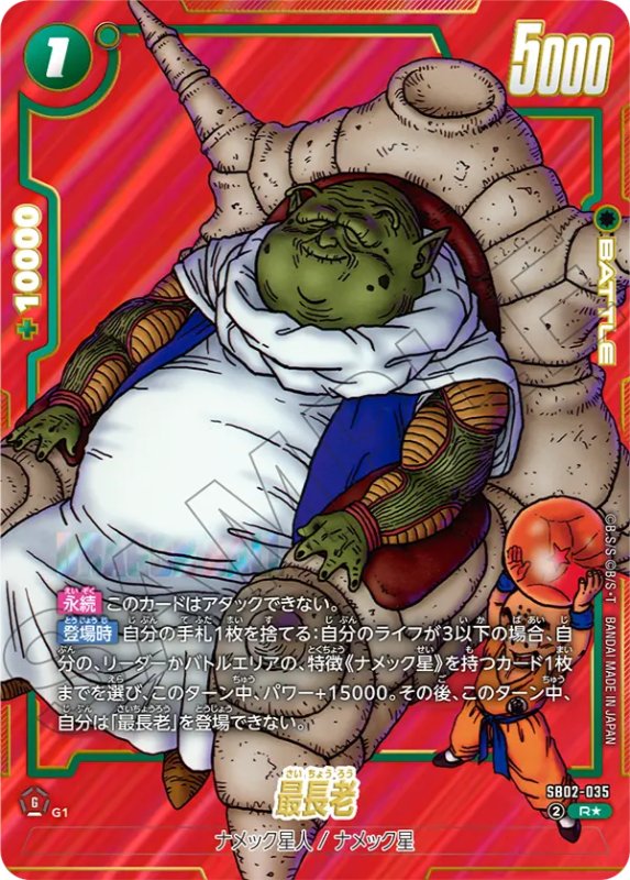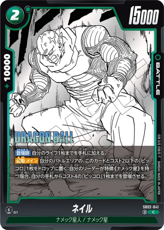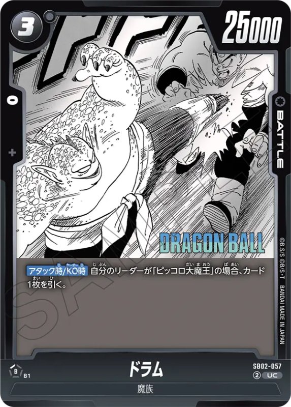 【自分のターン終了時】バトルエリアのこのカードをドロップに置く:自分のリーダーが「ピッコロ大魔王」の場合、自分の手札の「ピッコロ大魔王」以外のコスト3以下の特徴《魔族》を持つバトルカード1枚までを登場させる。