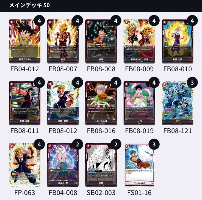 最強の2コストとの声も名高いサーチ&パワーパンプ可能なSR2悟空が3枚採用!?!ゴッかめが不採用である点も含めてかなり扱いが難しそうなデッキですね…っ!