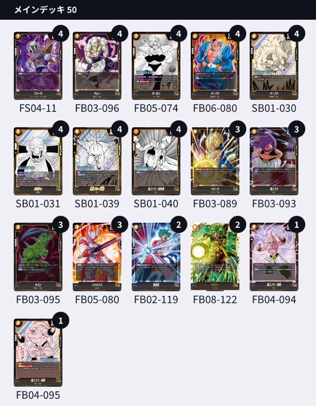 続いて、1/26(月)~2/8(日)8弾環境アルバト優勝『ブウ』デッキリストを公開してくれているポストを1件紹介させて頂きます!