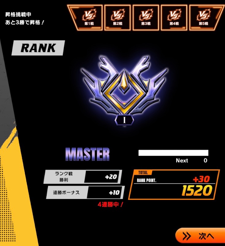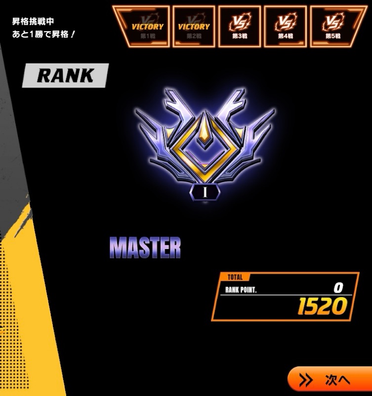 この構築にしてからは紆余曲折ありながらもマスターⅠ帯で4連勝しながらゴッドランク昇格戦に挑み…