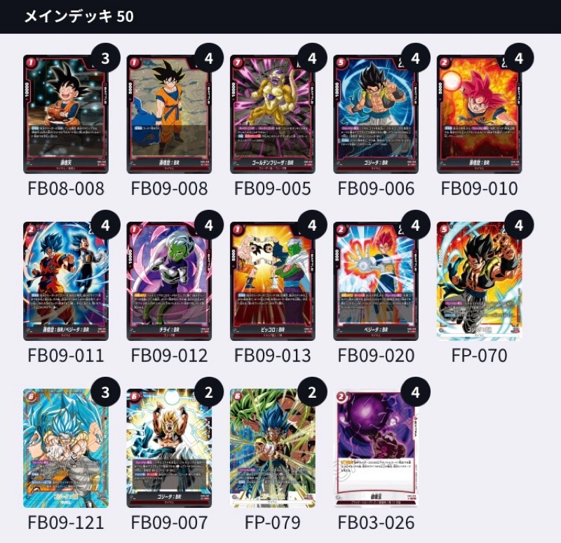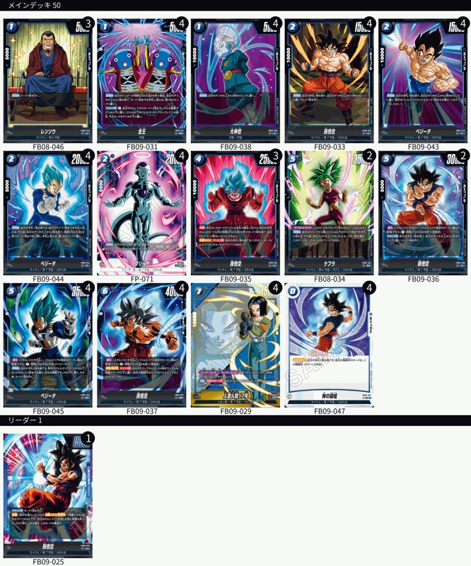 まさかの『FB09-016 C ベクウ:BR』が不採用となったデッキですが、『FB03-026 C 破壊玉』を4枚採用しているのが悟空3使いにとってはぞっとさせられる構築ですね…っ!