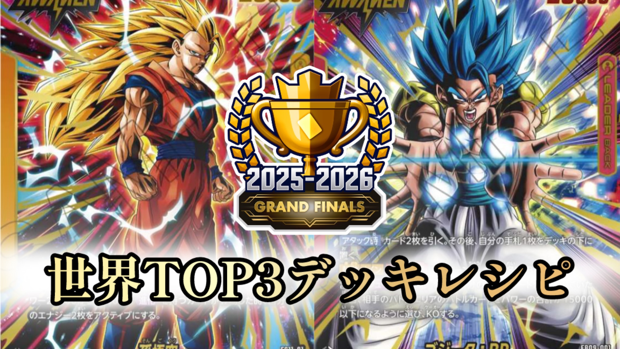 今回は2026年4月19日(日)・20日(月)に行われたドラゴンボールフュージョンワールドCHAMPIONSHIP2025-2026GRAND FINALS(チャンピオンシップ2025-2026グランドファイナルズ)のデジタル&紙版世界TOP3のデッキレシピを一挙に紹介していきます!